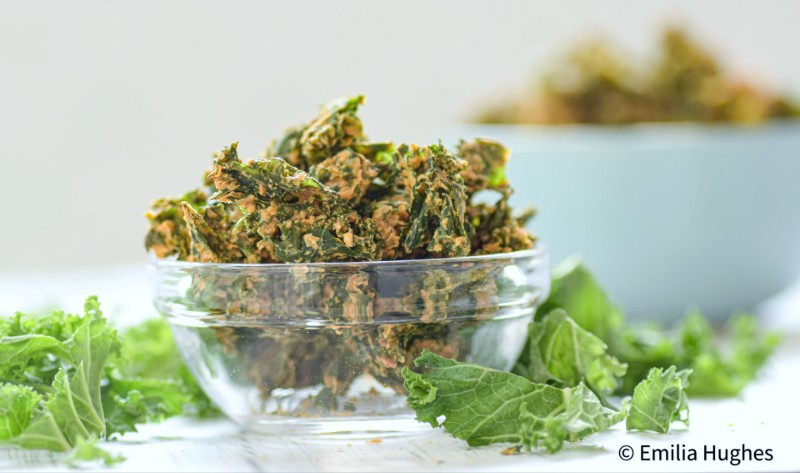Kale chips are raw, crunchy, and have a slightly cheesy taste (without a single gram of cheese). They’re made from simple ingredients – vegetables, nuts, and a bit of nutritional yeast (not to be confused with active dry yeast). Dried at a low temperature, they’re packed with vitamins, minerals, and healthy fats.